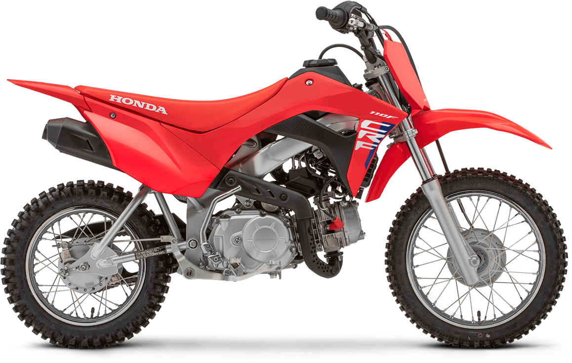 The CRF110F's dependable four-stroke single-cylinder engine offers good performance with a broad powerband--perfect for a wide range of riders including beginners. And because it's a Honda, you know it's reliable, too.